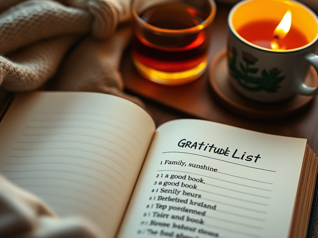 Each night before bed, grab a notebook or journal and write down one thing you’re grateful for. Keep it specific and simple—it doesn’t have to be monumental. Maybe it’s the way the sunlight streamed through your window in the morning or how a stranger held the door open for you.